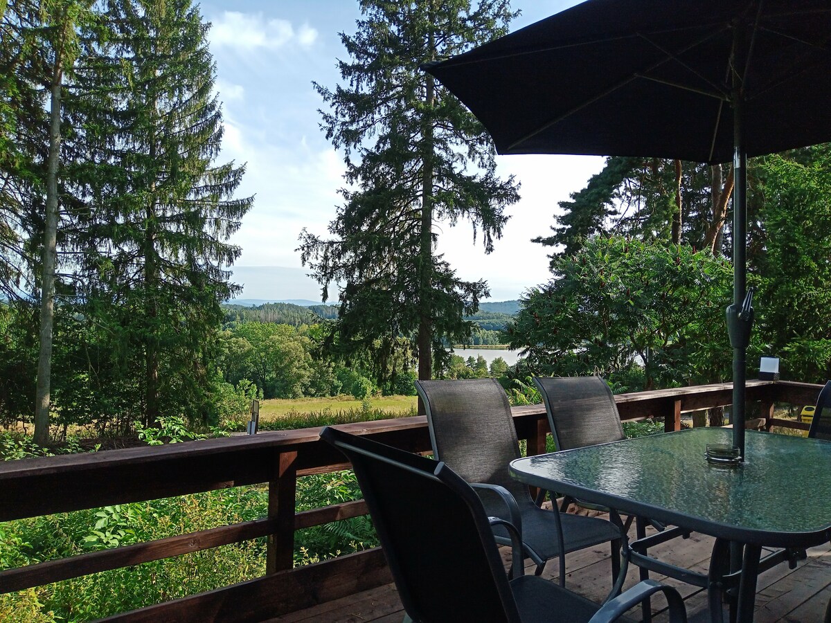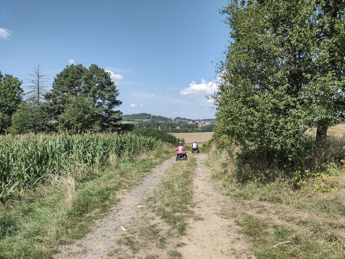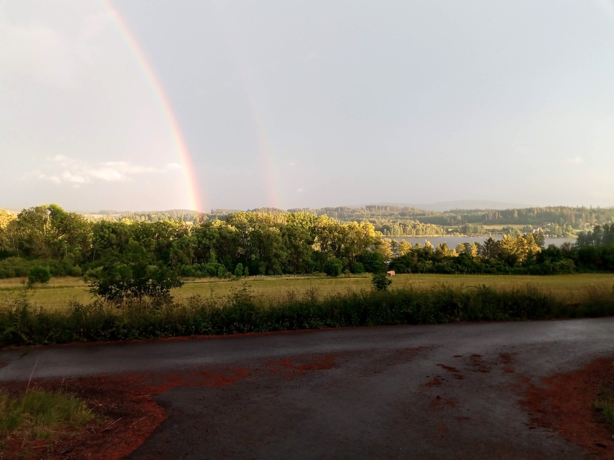 Pokaždé, když přijedeme na Hnačov, nemůžeme se nabažit úžasnou atmosférou místa a výhledem do kraje z naší osady. Je tady krásně vždycky!